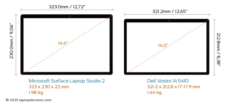 Audio JackBoth Surface Laptop Studio 2 and Vostro 14 5410 are equipped with a 3.5mm Audio Jack, providing seamless connection to headphones and speakers.