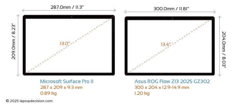 ThunderboltNeither Surface Pro 11 nor ROG Flow Z13 2025 GZ302 has Thunderbolt port.