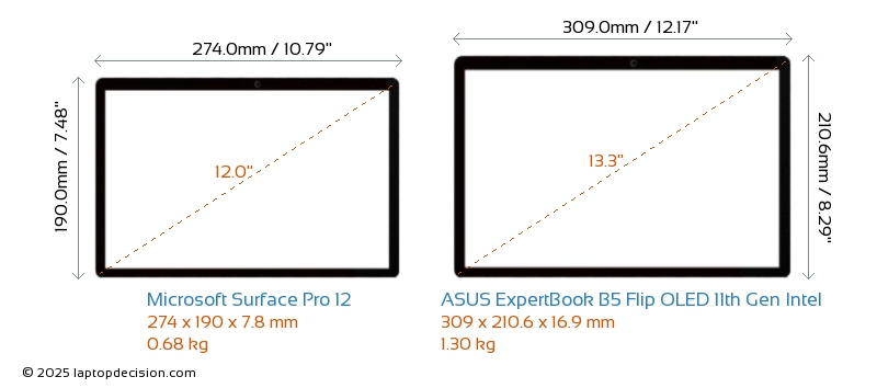 Audio JackExpertBook B5 Flip OLED 11th Gen Intel is equipped with a 3.5mm Audio Jack, allowing seamless connection to headphones and speakers. Surface Pro 12 does not have a 3.5mm Audio Jack.