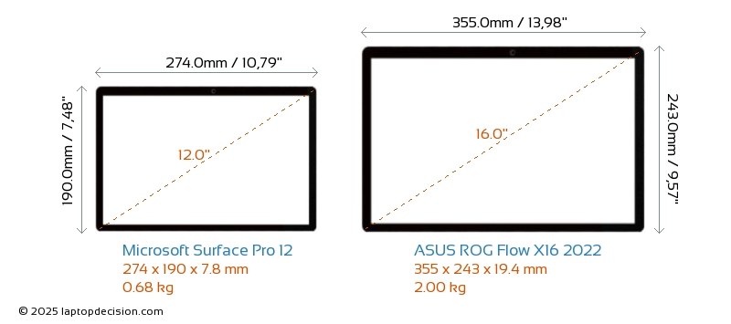 Wifi Surface Pro 12 features a more advanced Wi-Fi standard v7, providing faster and more reliable wireless connections compared to ROG Flow X16 2022 (v6E).