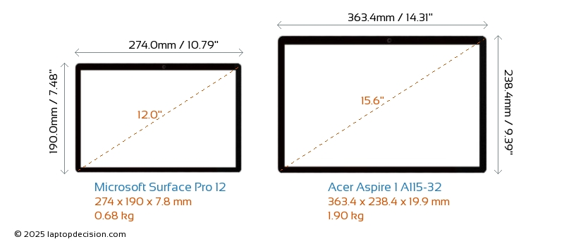 HDMIAspire 1 A115-32 features an HDMI port (1x HDMI 1.4) for connecting to external monitors. Surface Pro 12 does not have an HDMI port.