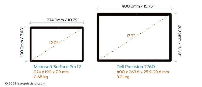 ThunderboltPrecision 7760 is equipped with Thunderbolt 4 port. Surface Pro 12 does not have Thunderbolt port.