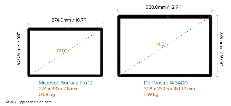 HDMIVostro 14 3400 features an HDMI port (1x HDMI 1.4) for connecting to external monitors. Surface Pro 12 does not have an HDMI port.