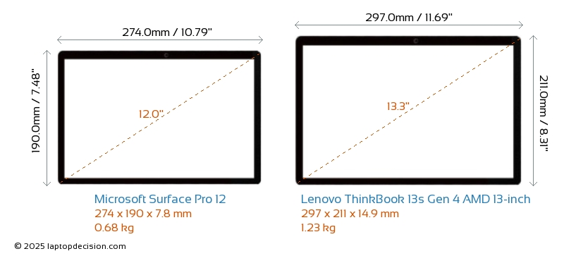 ThunderboltNeither Surface Pro 12 nor ThinkBook 13s Gen 4 AMD 13-inch has Thunderbolt port.