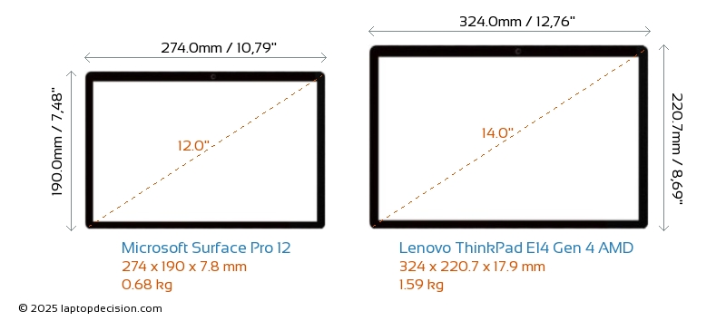 ThunderboltNeither Surface Pro 12 nor ThinkPad E14 Gen 4 AMD has Thunderbolt port.