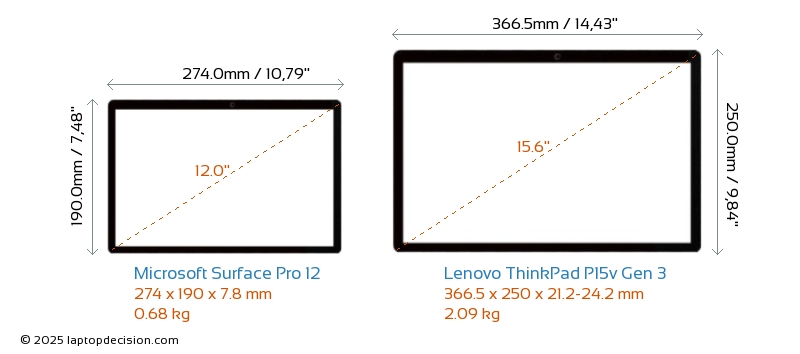 Audio JackThinkPad P15v Gen 3 is equipped with a 3.5mm Audio Jack, allowing seamless connection to headphones and speakers. Surface Pro 12 does not have a 3.5mm Audio Jack.