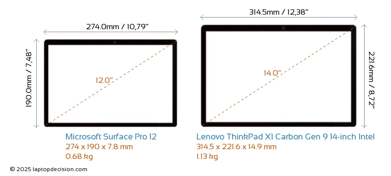 ThunderboltThinkPad X1 Carbon Gen 9 14-inch Intel is equipped with Thunderbolt 4 port. Surface Pro 12 does not have Thunderbolt port.