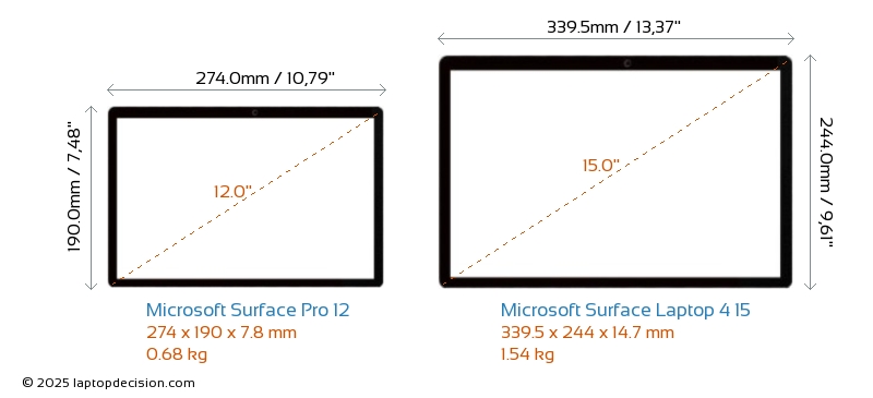 Audio JackSurface Laptop 4 15 is equipped with a 3.5mm Audio Jack, allowing seamless connection to headphones and speakers. Surface Pro 12 does not have a 3.5mm Audio Jack.