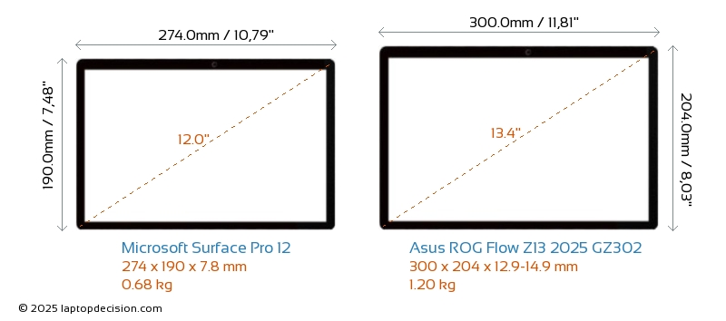 ThunderboltNeither Surface Pro 12 nor ROG Flow Z13 2025 GZ302 has Thunderbolt port.
