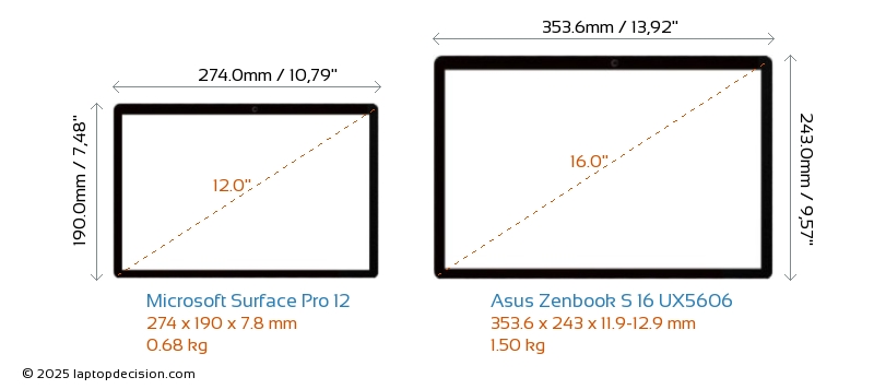 Audio Jack Zenbook S 16 UX5606 is equipped with a 3.5mm Audio Jack, allowing seamless connection to headphones and speakers. Surface Pro 12 does not have a 3.5mm Audio Jack.