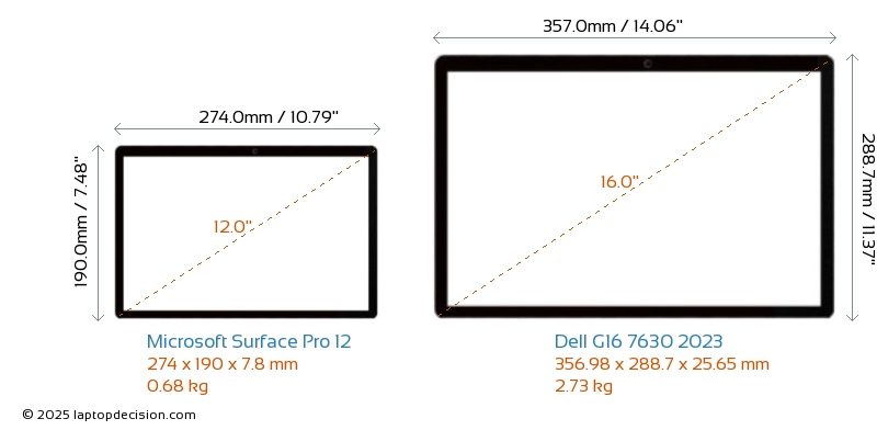 Audio Jack G16 7630 2023 is equipped with a 3.5mm Audio Jack, allowing seamless connection to headphones and speakers. Surface Pro 12 does not have a 3.5mm Audio Jack.