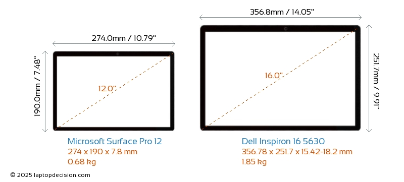 HDMI Inspiron 16 5630 features an HDMI port (1x HDMI 1.4) for connecting to external monitors. Surface Pro 12 does not have an HDMI port.