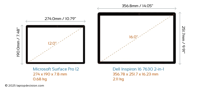 Audio Jack Inspiron 16 7630 2-in-1 is equipped with a 3.5mm Audio Jack, allowing seamless connection to headphones and speakers. Surface Pro 12 does not have a 3.5mm Audio Jack.