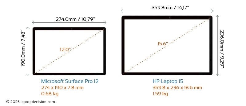 Audio Jack Laptop 15 is equipped with a 3.5mm Audio Jack, allowing seamless connection to headphones and speakers. Surface Pro 12 does not have a 3.5mm Audio Jack.