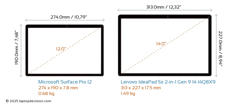 ThunderboltNeither Surface Pro 12 nor IdeaPad 5x 2-in-1 Gen 9 14 14Q8X9 has Thunderbolt port.