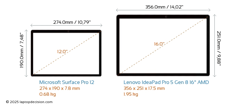 HDMI IdeaPad Pro 5 Gen 8 16" AMD features an HDMI port (1x HDMI 2.1) for connecting to external monitors. Surface Pro 12 does not have an HDMI port.