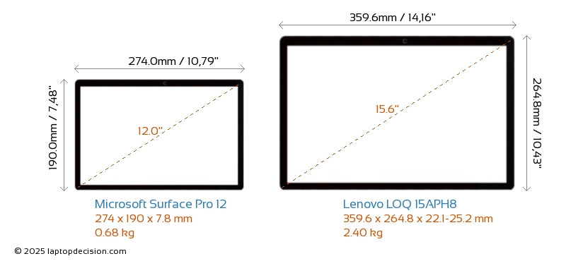Audio Jack LOQ 15APH8 is equipped with a 3.5mm Audio Jack, allowing seamless connection to headphones and speakers. Surface Pro 12 does not have a 3.5mm Audio Jack.