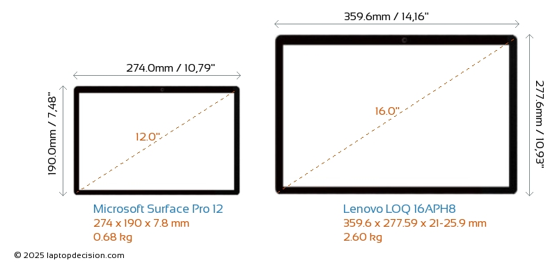 Audio Jack LOQ 16APH8 is equipped with a 3.5mm Audio Jack, allowing seamless connection to headphones and speakers. Surface Pro 12 does not have a 3.5mm Audio Jack.