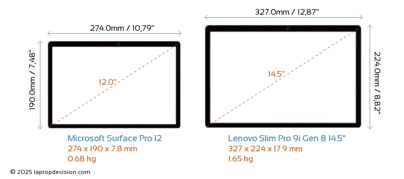 Audio Jack Slim Pro 9i Gen 8 14.5" is equipped with a 3.5mm Audio Jack, allowing seamless connection to headphones and speakers. Surface Pro 12 does not have a 3.5mm Audio Jack.