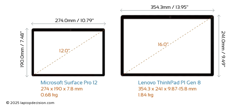 Thunderbolt ThinkPad P1 Gen 8 is equipped with Thunderbolt 5 port. Surface Pro 12 does not have Thunderbolt port.