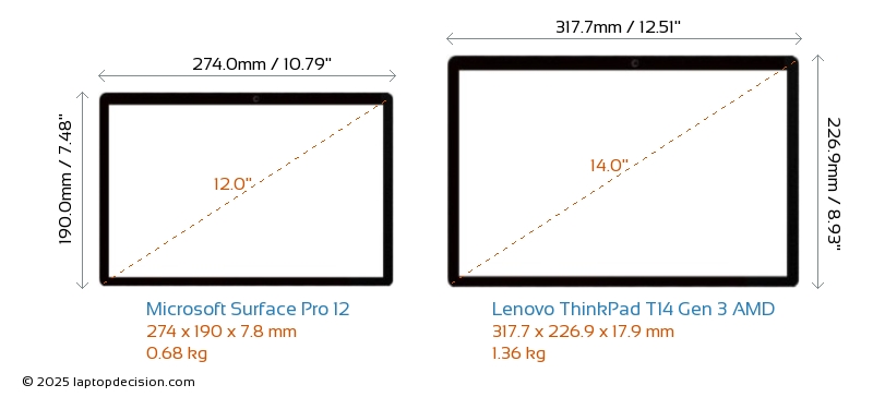 ThunderboltNeither Surface Pro 12 nor ThinkPad T14 Gen 3 AMD has Thunderbolt port.