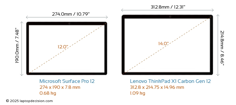 Audio Jack ThinkPad X1 Carbon Gen 12 is equipped with a 3.5mm Audio Jack, allowing seamless connection to headphones and speakers. Surface Pro 12 does not have a 3.5mm Audio Jack.