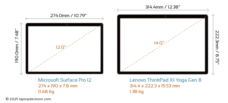 HDMI ThinkPad X1 Yoga Gen 8 features an HDMI port (1x HDMI 2.0) for connecting to external monitors. Surface Pro 12 does not have an HDMI port.