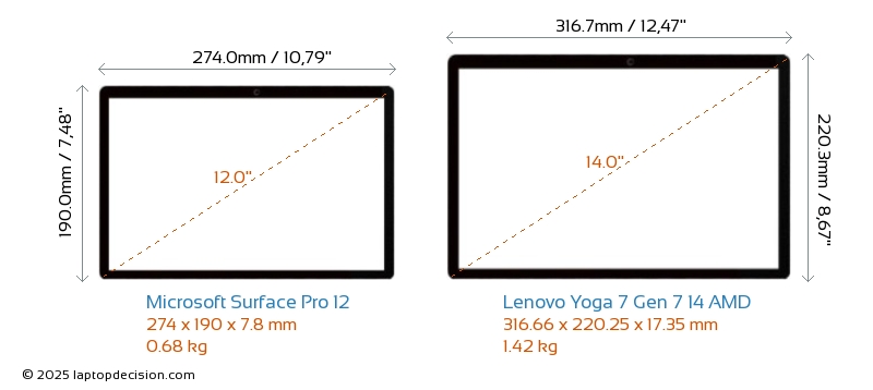 USB Yoga 7 Gen 7 14 AMD is equipped with 1x USB 3.2 USB-A ports. Surface Pro 12 does not have USB-A ports.Both Surface Pro 12 and Yoga 7 Gen 7 14 AMD feature 2x USB 4.0 USB Type-C ports.
