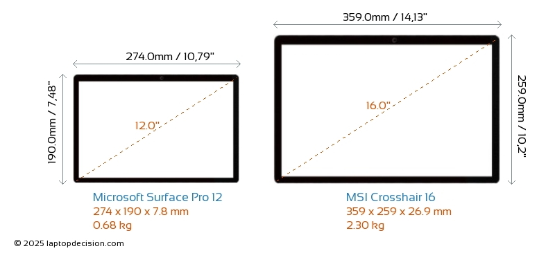 Audio Jack Crosshair 16 is equipped with a 3.5mm Audio Jack, allowing seamless connection to headphones and speakers. Surface Pro 12 does not have a 3.5mm Audio Jack.