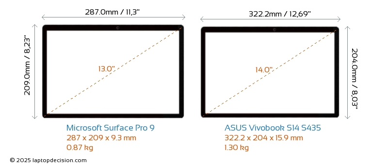 Audio JackVivobook S14 S435 is equipped with a 3.5mm Audio Jack, allowing seamless connection to headphones and speakers. Surface Pro 9 does not have a 3.5mm Audio Jack.