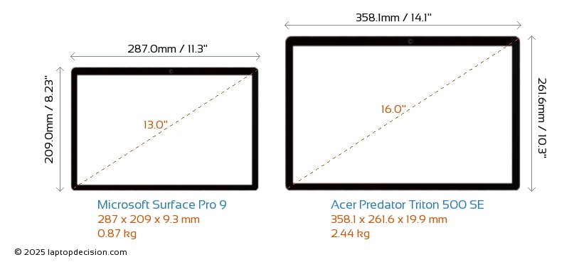HDMIPredator Triton 500 SE features an HDMI port (1x HDMI 2.1) for connecting to external monitors. Surface Pro 9 does not have an HDMI port.