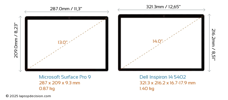 HDMIInspiron 14 5402 features an HDMI port (1x HDMI 1.4) for connecting to external monitors. Surface Pro 9 does not have an HDMI port.