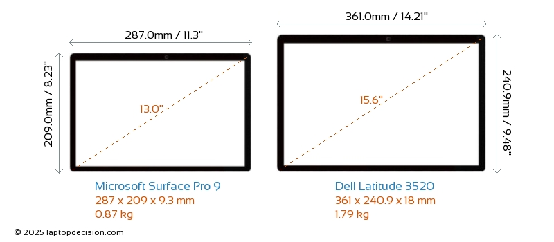 USB Latitude 3520 is equipped with 2x USB 3.2 USB-A ports. Surface Pro 9 does not have USB-A ports.Both Surface Pro 9 and Latitude 3520 have USB Type-C ports. Surface Pro 9 has 2x USB 4.0 USB Type-C ports, while Latitude 3520 has 1x USB 3.2 USB Type-C ports.