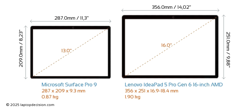 Audio JackIdeaPad 5 Pro Gen 6 16-inch AMD is equipped with a 3.5mm Audio Jack, allowing seamless connection to headphones and speakers. Surface Pro 9 does not have a 3.5mm Audio Jack.
