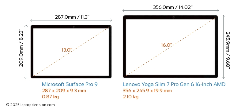 Wifi Surface Pro 9 features a more advanced Wi-Fi standard v6E, providing faster and more reliable wireless connections compared to Yoga Slim 7 Pro Gen 6 16-inch AMD (v6).