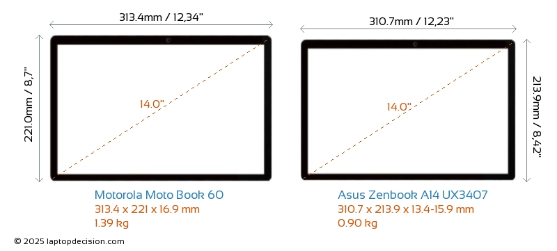 Audio JackBoth Moto Book 60 and Zenbook A14 UX3407 are equipped with a 3.5mm Audio Jack, providing seamless connection to headphones and speakers.