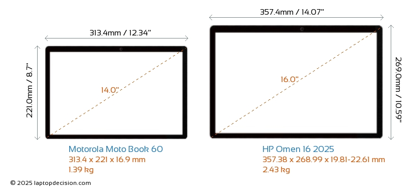 HDMIBoth Moto Book 60 and Omen 16 2025 feature an HDMI port. Moto Book 60 offers 1x HDMI 1.4, while Omen 16 2025 offers 1x HDMI 2.1.