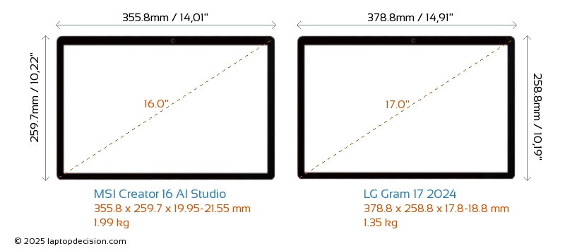 USBBoth Creator 16 AI Studio and Gram 17 2024 have USB-A ports. Creator 16 AI Studio has 1x USB 3.2 USB-A ports, while Gram 17 2024 has 2x USB 3.2 USB-A ports.Both Creator 16 AI Studio and Gram 17 2024 feature 2x USB 4.0 USB Type-C ports.