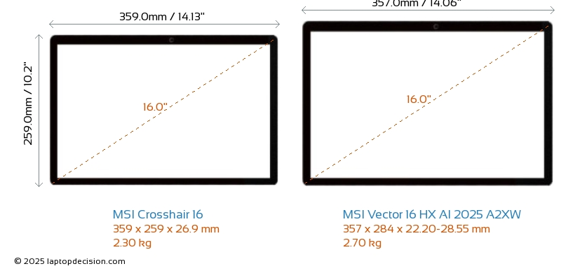 USBBoth Crosshair 16 and Vector 16 HX AI 2025 A2XW have USB-A ports. Crosshair 16 has 3x USB 3.2 USB-A ports, while Vector 16 HX AI 2025 A2XW has 2x USB 3.2 USB-A ports.Both Crosshair 16 and Vector 16 HX AI 2025 A2XW have USB Type-C ports. Crosshair 16 has 1x USB 3.2 USB Type-C ports, while Vector 16 HX AI 2025 A2XW has 2x USB 4.0 USB Type-C ports.