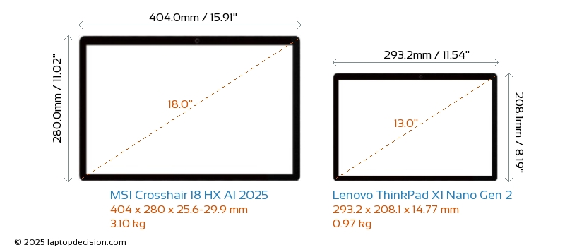 HDMI Crosshair 18 HX AI 2025 features an HDMI port (1x HDMI 2.1) for connecting to external monitors. ThinkPad X1 Nano Gen 2 does not have an HDMI port.
