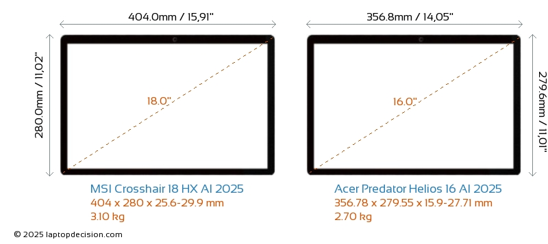 HDMIBoth Crosshair 18 HX AI 2025 and Predator Helios 16 AI 2025 feature an HDMI port (1x HDMI 2.1) for connecting to external monitors.