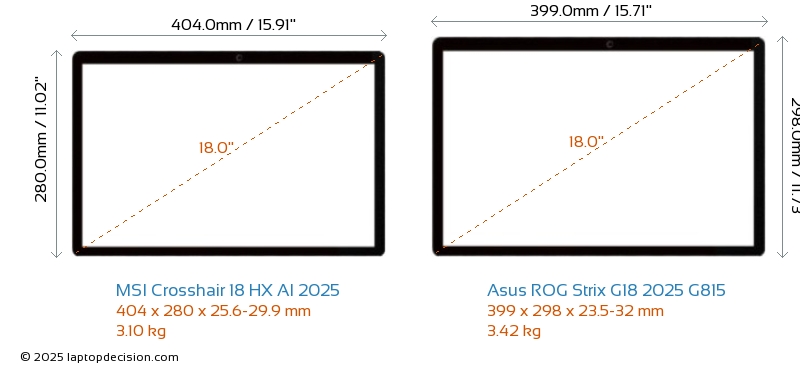 USBBoth Crosshair 18 HX AI 2025 and ROG Strix G18 2025 G815 feature 3x USB 3.2 USB-A ports.Both Crosshair 18 HX AI 2025 and ROG Strix G18 2025 G815 have USB Type-C ports. Crosshair 18 HX AI 2025 has 1x USB 3.2 USB Type-C ports, while ROG Strix G18 2025 G815 has 2x USB 4.0 USB Type-C ports.