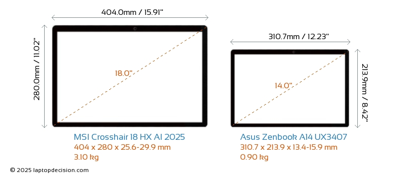 USBBoth Crosshair 18 HX AI 2025 and Zenbook A14 UX3407 have USB-A ports. Crosshair 18 HX AI 2025 has 3x USB 3.2 USB-A ports, while Zenbook A14 UX3407 has 1x USB 3.2 USB-A ports.Both Crosshair 18 HX AI 2025 and Zenbook A14 UX3407 have USB Type-C ports. Crosshair 18 HX AI 2025 has 1x USB 3.2 USB Type-C ports, while Zenbook A14 UX3407 has 2x USB 4.0 USB Type-C ports.