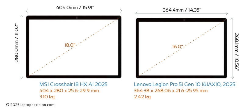 HDMIBoth Crosshair 18 HX AI 2025 and Legion Pro 5i Gen 10 16IAX10, 2025 feature an HDMI port (1x HDMI 2.1) for connecting to external monitors.