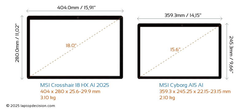 HDMIBoth Crosshair 18 HX AI 2025 and Cyborg A15 AI feature an HDMI port (1x HDMI 2.1) for connecting to external monitors.