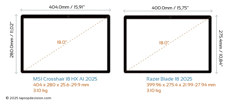Wifi Blade 18 2025 features a more advanced Wi-Fi standard v7, providing faster and more reliable wireless connections compared to Crosshair 18 HX AI 2025 (v6E).