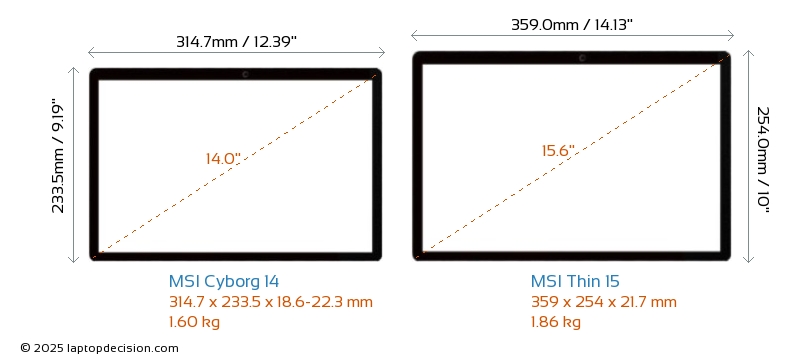 HDMIBoth Cyborg 14 and Thin 15 feature an HDMI port (1x HDMI 2.1) for connecting to external monitors.