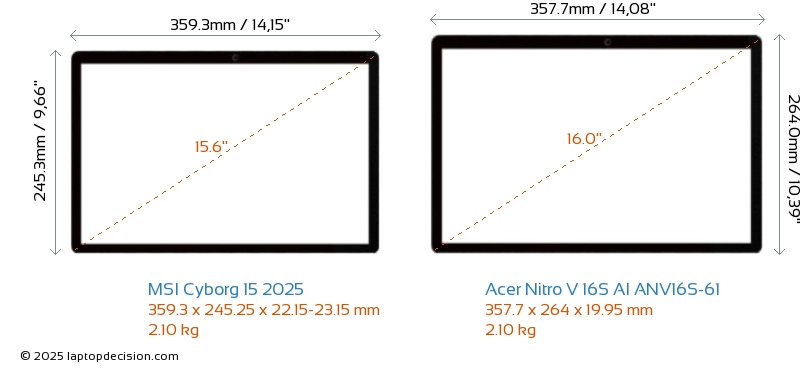 ThunderboltNeither Cyborg 15 2025 nor Nitro V 16S AI ANV16S-61 has Thunderbolt port.