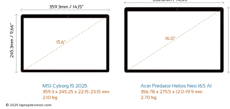 HDMIBoth Cyborg 15 2025 and Predator Helios Neo 16S AI feature an HDMI port (1x HDMI 2.1) for connecting to external monitors.