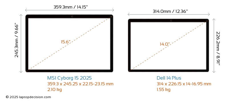 HDMIBoth Cyborg 15 2025 and 14 Plus feature an HDMI port (1x HDMI 2.1) for connecting to external monitors.